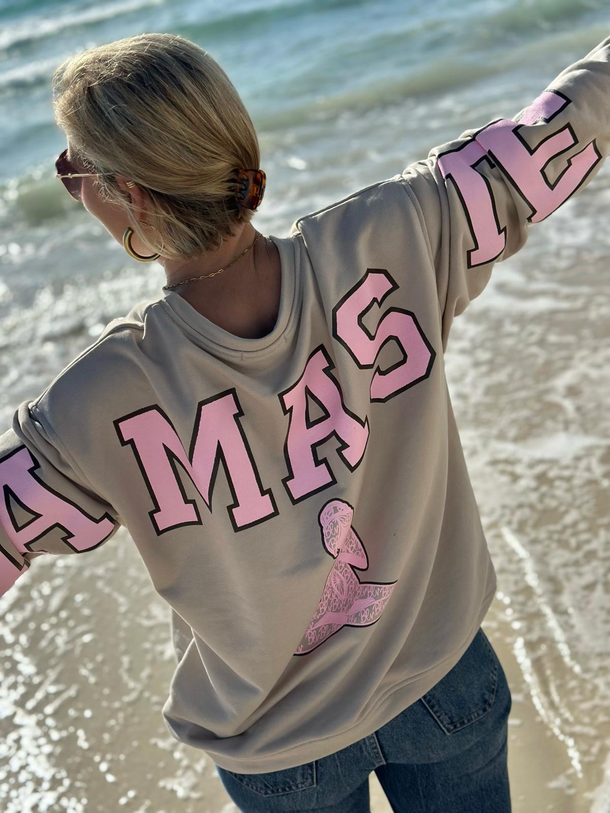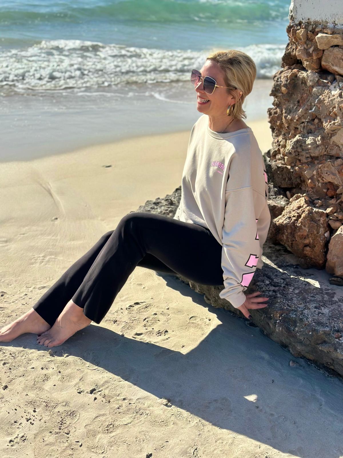 GOOD VIBES Statement Sweatshirt in SAND BEIGE