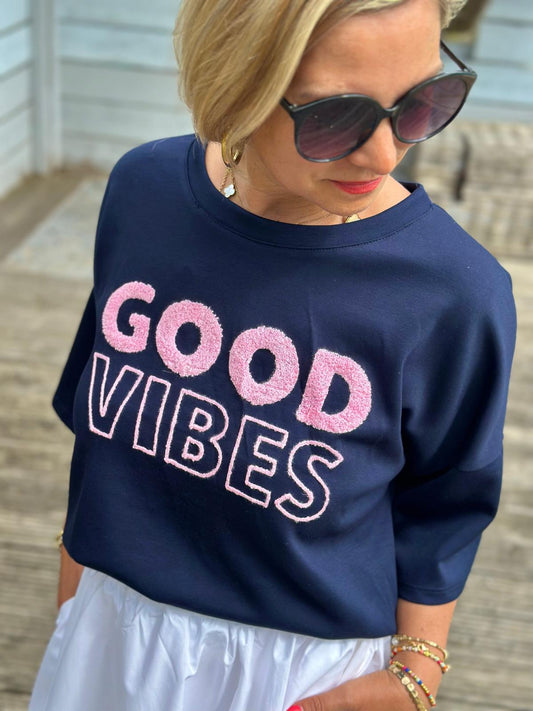 "GOOD VIBES" Kurz-Arm Sweatshirt in NAVY