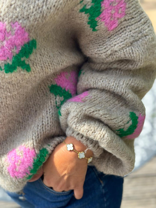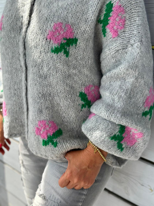 AusverkauftKuschel Strickjacke ROSES in Grau