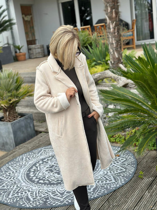 AusverkauftKuscheliger Cord Mantel in Cremé