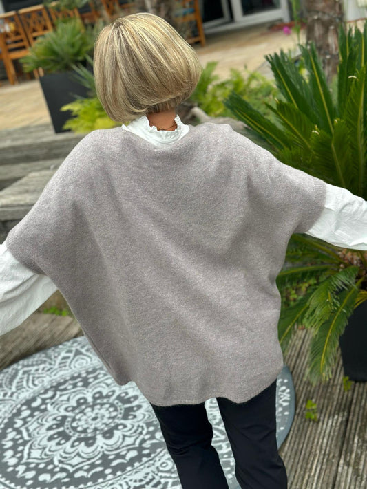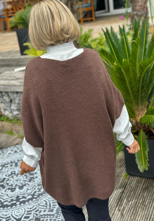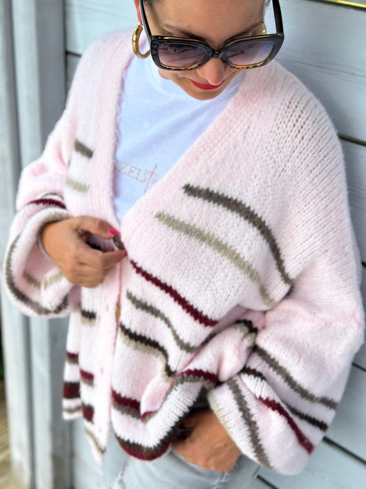 Süße Onesize Strickjacke zum binden in Cremé/Braun