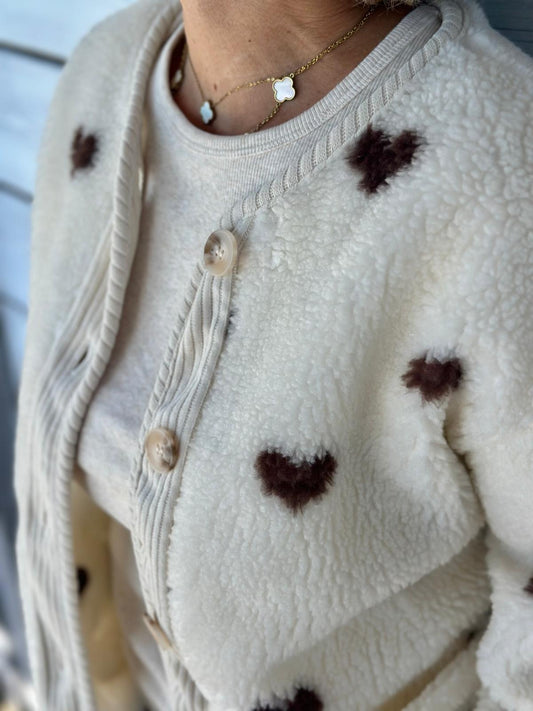 AusverkauftSüße TEDDY-Kuscheljacke "HERZ" in Creméweiss