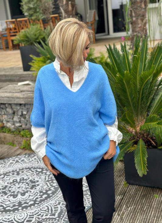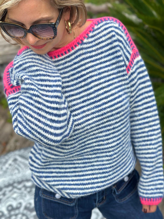 AusverkauftSüßer Herbst-Pulli in Blau/Weiss STRIPES