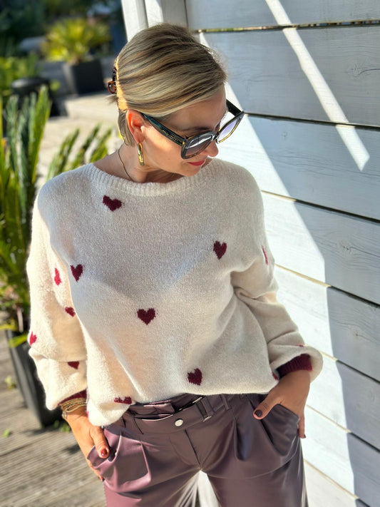 AusverkauftSüßer HERZI Pullover in Beige/Bordeaux