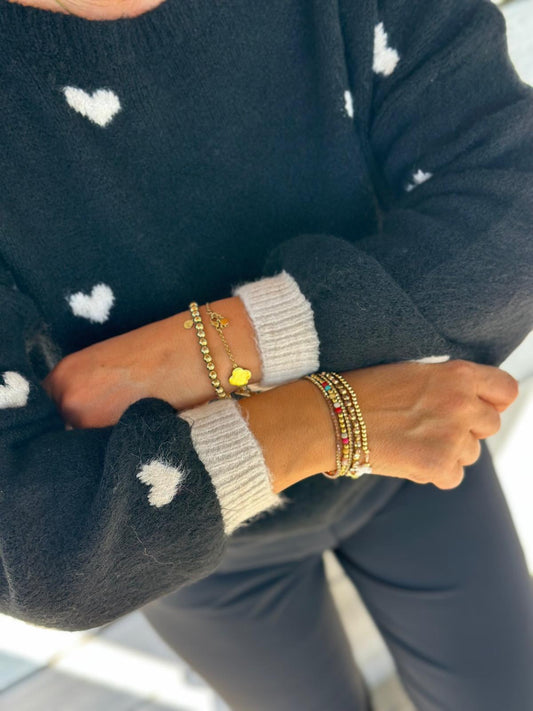 Süßer HERZI Pullover in Schwarz/Wollweiss