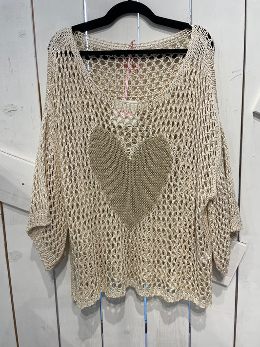 AusverkauftSüßer Onesize Netzpullover "HERZI" in Beige