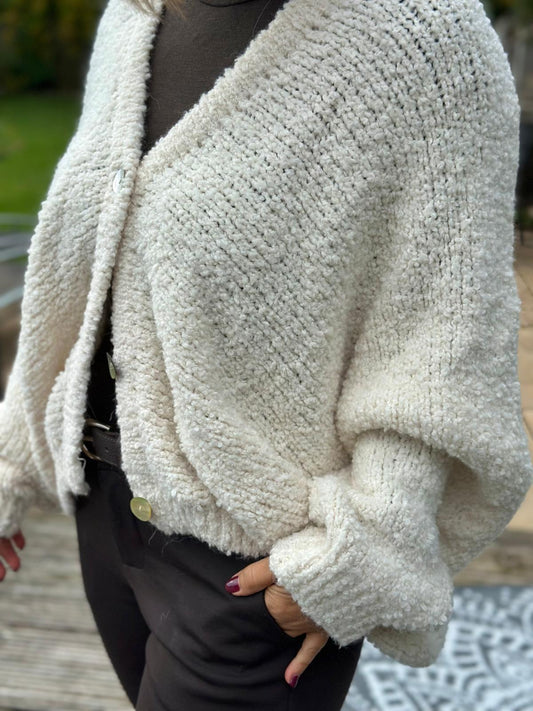 Weit geschnittene Onesize Kuschel-Jacke in Cremé
