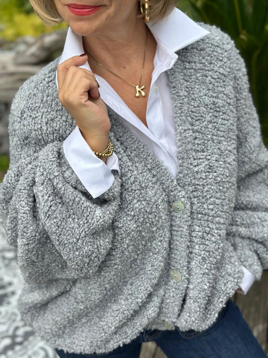AusverkauftWeit geschnittene Onesize Kuschel-Jacke in Grau