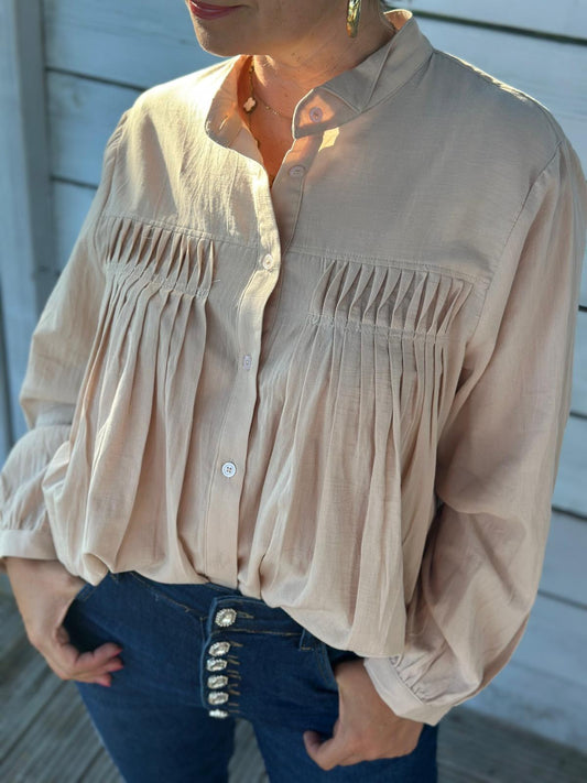 AusverkauftGeraffte Herbst-Bluse in Cremé