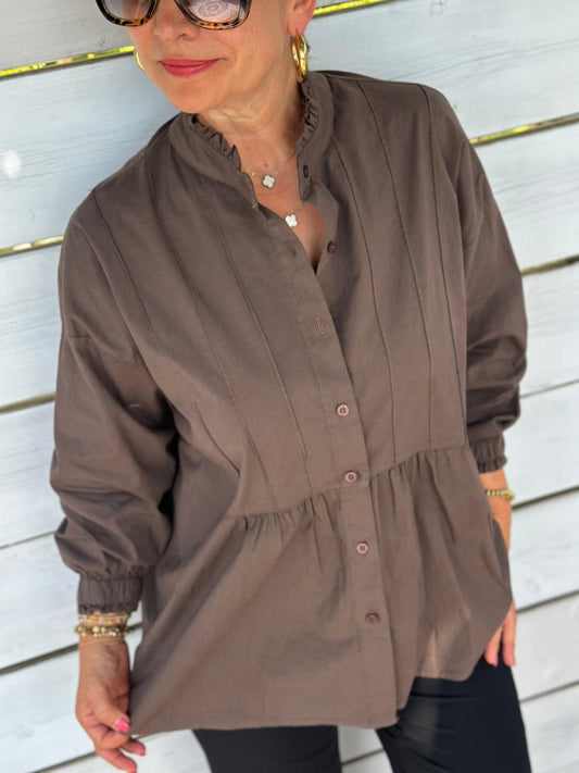 Geraffte Highlight-Bluse in Chocolate