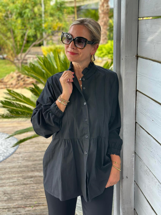 Geraffte Highlight-Bluse in Schwarz