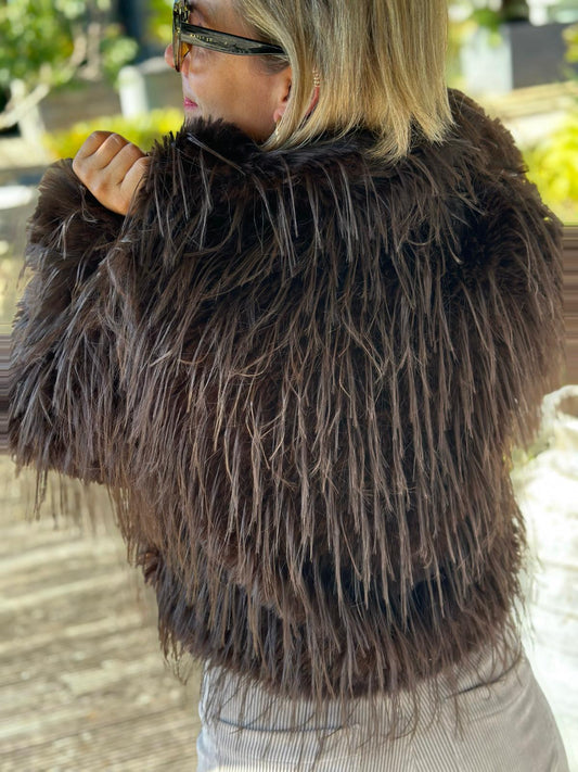 AusverkauftFluffige Felljacke in Chocolate