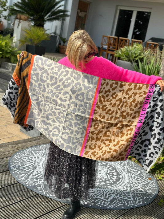 Großer LEO Herbstschal "WILD VIBES" in Grau/Cremé