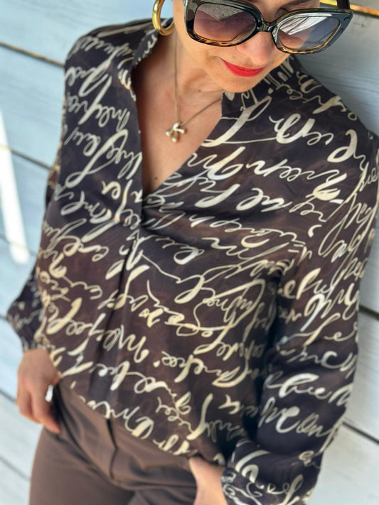Stylische Classy Bluse mit Stickerei in White/Chocolate