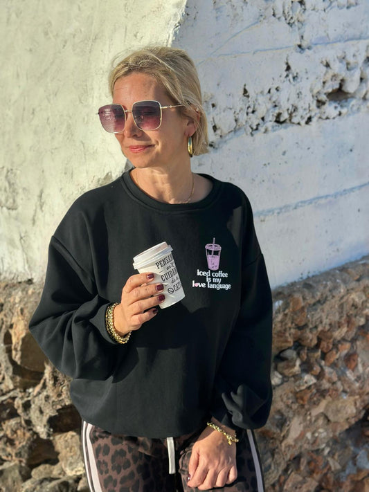 Sweatshirt „Iced Coffee is my Love Language“ – Cozy Chic in Schwarz