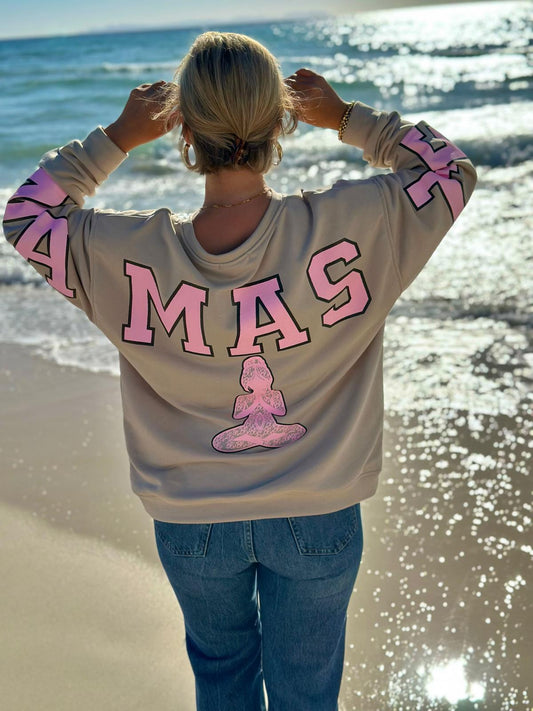 NAMASTE Statement Sweatshirt – Soft Taupe