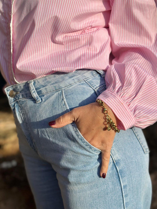 Gestreifte Baumwollbluse mit Spitzenleiste – Sweet Rosé