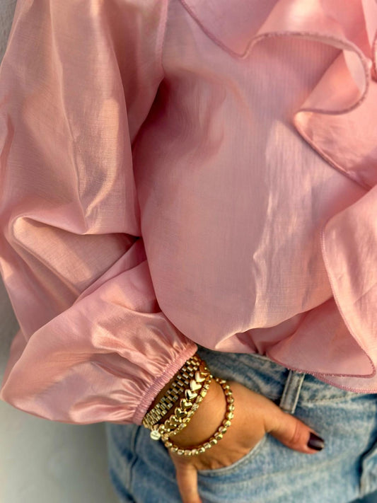 Elegante Volantbluse mit zarter Transparenz in Rosé
