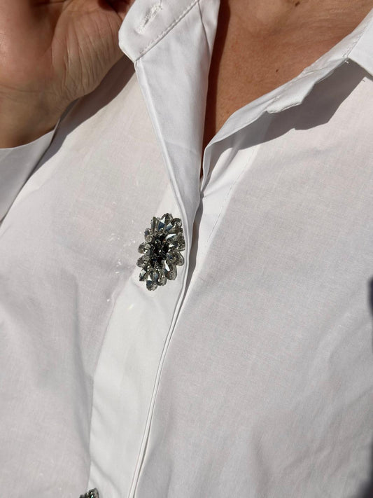 Weiße Oversize-Bluse mit Schmuckknöpfen – Elegant & Modern