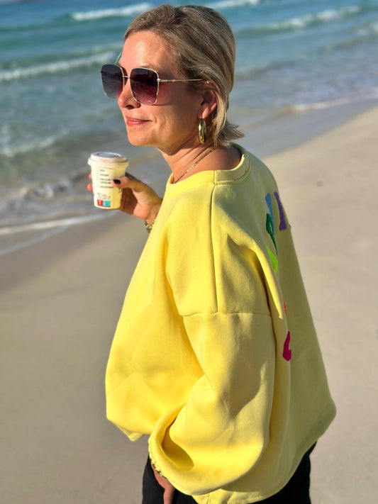 GOOD VIBES Statement Sweatshirt in Lemon Yellow