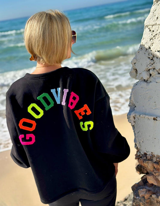 GOOD VIBES Statement Sweatshirt in CLASSY BLACK