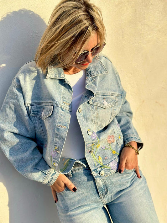 Flower Power Denim – Boho Jeans mit weitem Bein