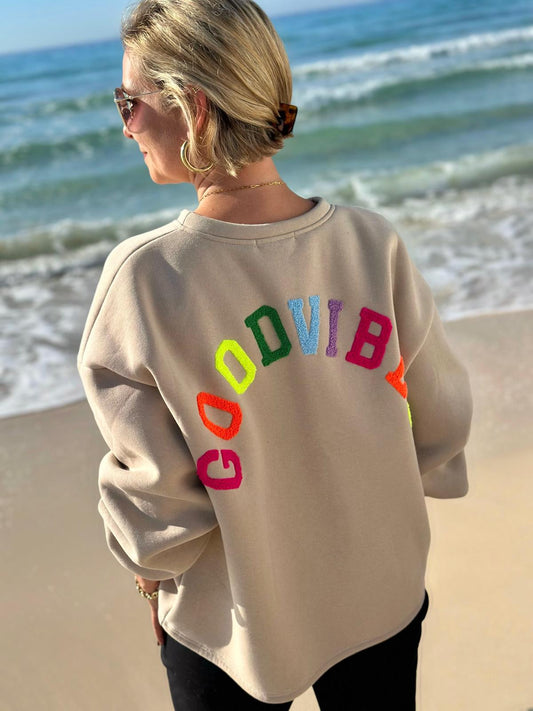 GOOD VIBES Statement Sweatshirt in SAND BEIGE