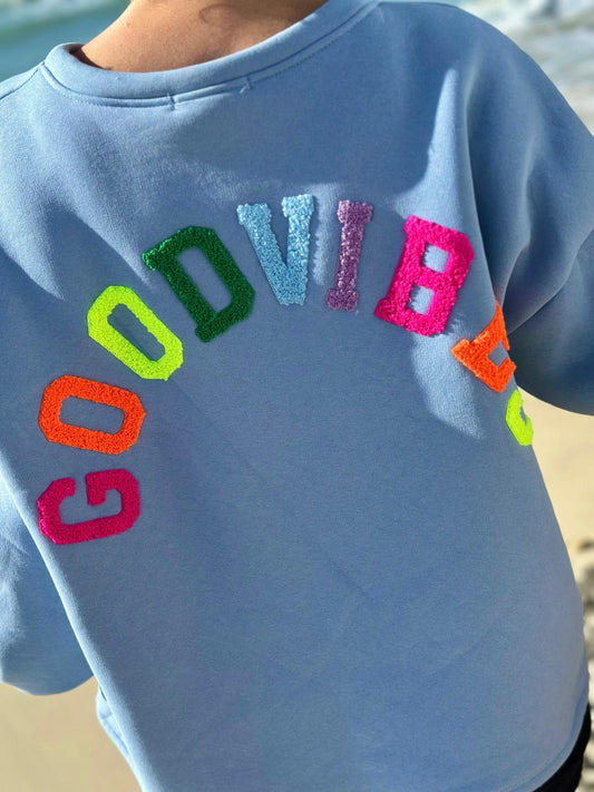 GOOD VIBES Statement Sweatshirt in OZEAN BLAU