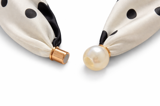 Cream Polka Halstuch mit Perlenverschluss