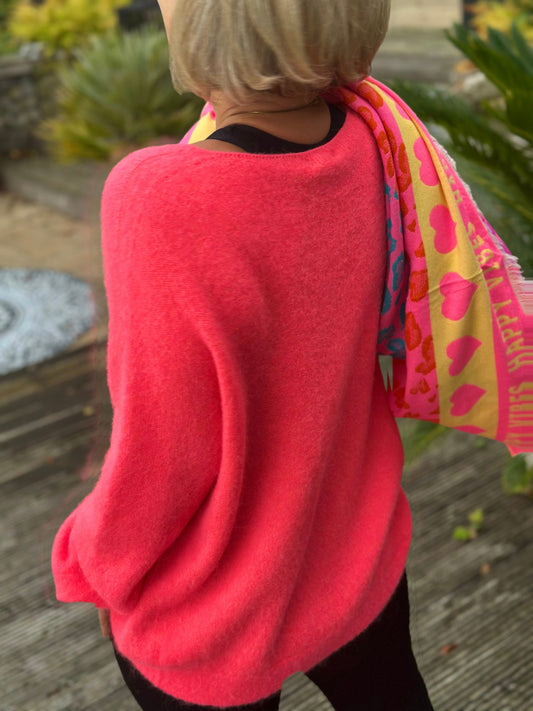 LEO LOVE Dreiecks-Schal in Pink/Orange