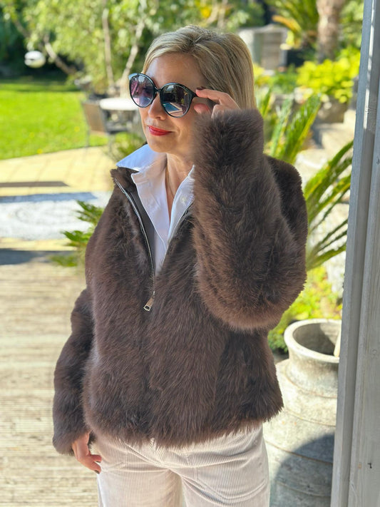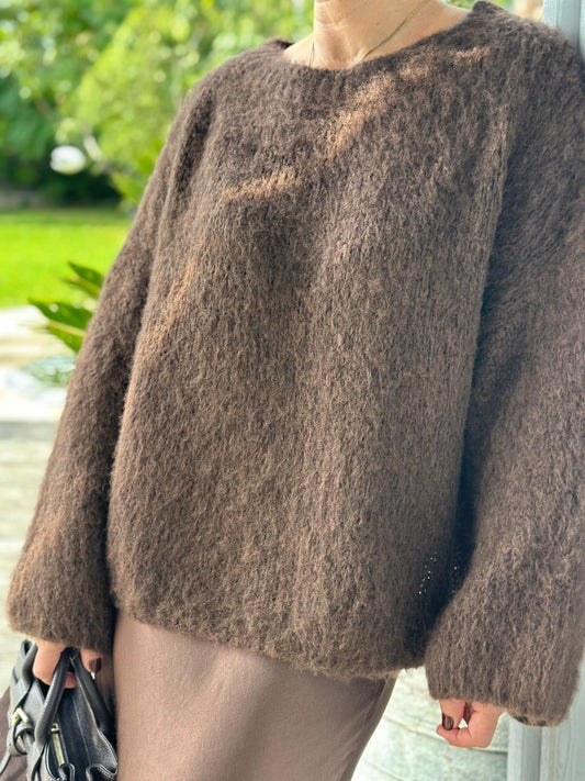 Weit geschnittener Onesize Pulli "SUPERFLAUSCH" in Chocolate