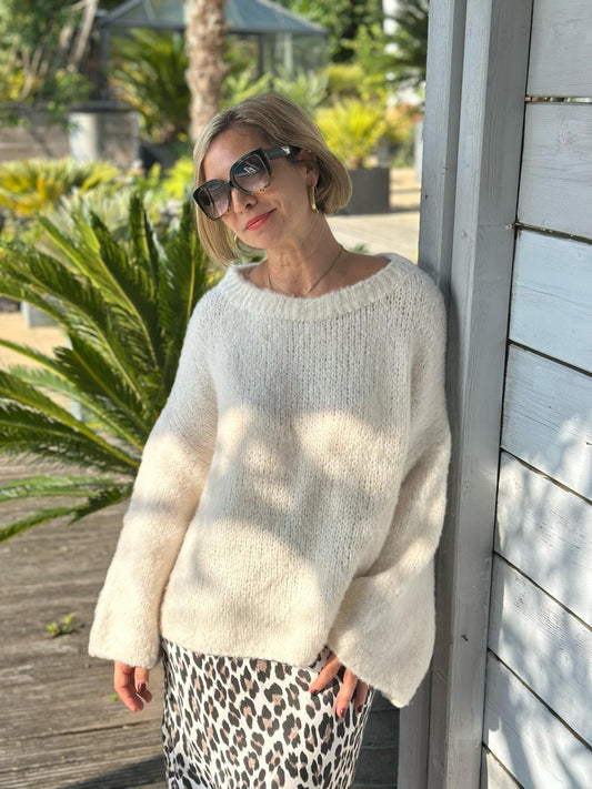 Weit geschnittener Onesize Pulli "SUPERFLAUSCH" in Wollweiss