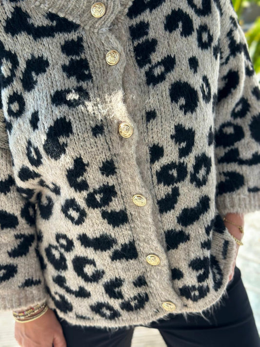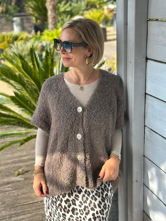 Grobstrick Weste in Taupé mit goldenen Akzenten