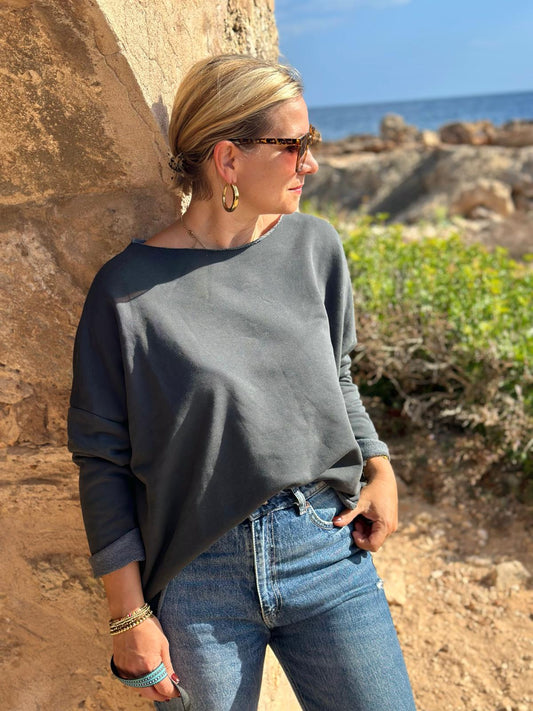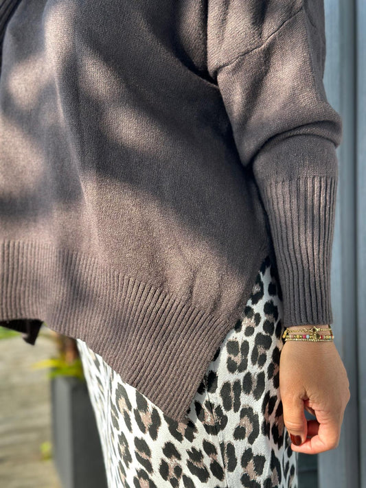 Stylischer Onesize Pulli mit Schlitz an der Seite in Chocolate
