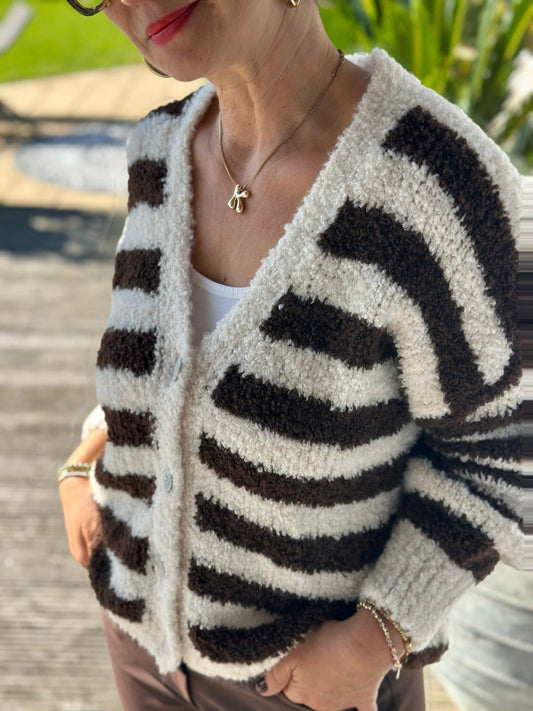 Gestreifte Grobstrick Jacke in Cremé/Chocolate