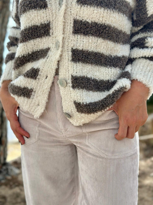 Gestreifte Grobstrick Jacke in Cremé/Taupé