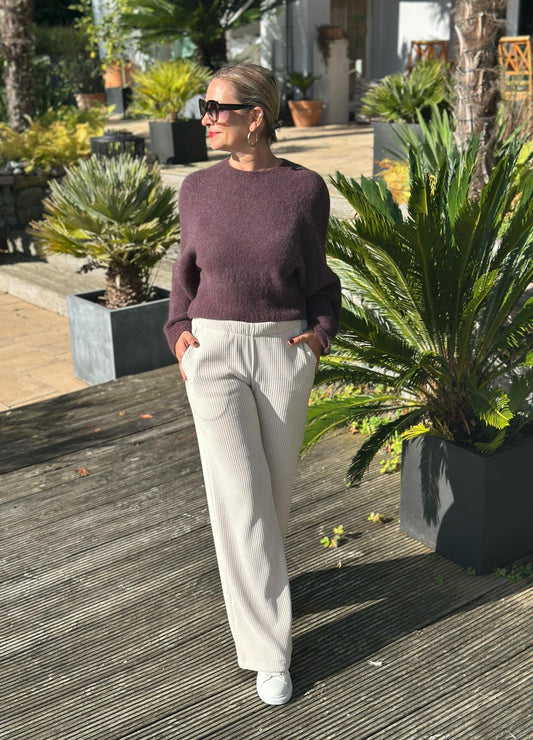 Cropped geschnittener Kuschelpullover "ELLA" in Braun-Flieder