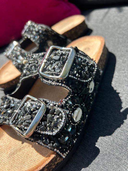 Glitzer Somer-Schläppchen in SHINY BLACK