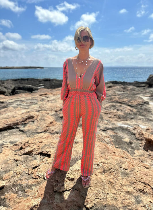 Stylischer Sommer-Jumpsuit "CATO" in Taupé/Pink