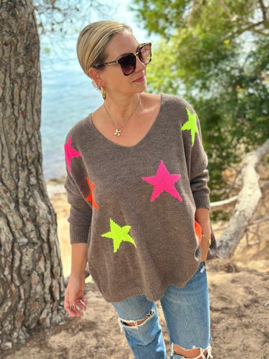 Weit geschnittener Lieblingspulli "STERNCHEN" in Braun