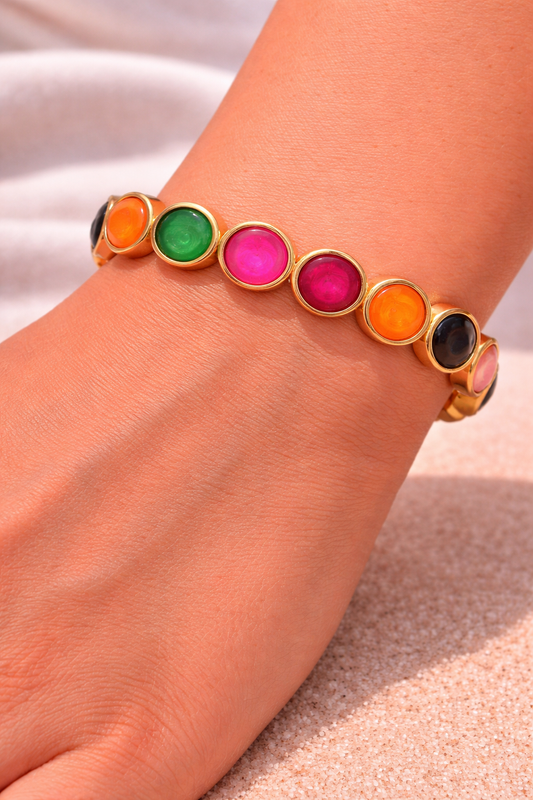 Buntes Statement Armband „Color Glow“ – elastisch & goldfarben