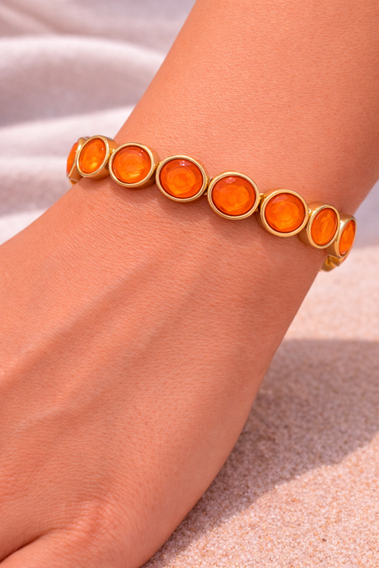 Statement Armband „Orange Glow“ – elastisch & goldfarben