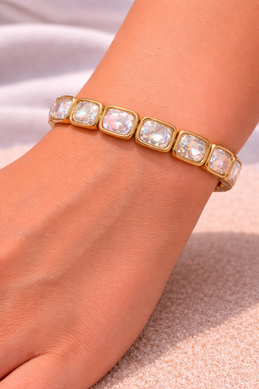 Elegantes Armband „Crystal Glow“ – elastisch & goldfarben