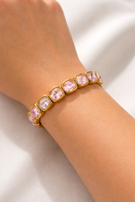 Statement Armband „Rosé Glow“ – elastisch & goldfarben