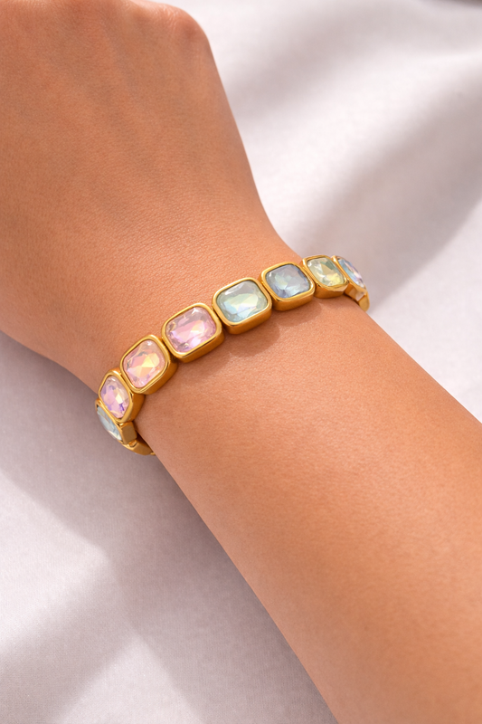 Pure Glow Stretch-Armband – Gold mit irisierenden Kristallen