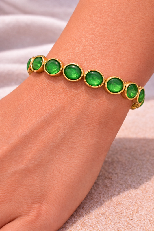 Statement Armband „Green Glow“ – elastisch & goldfarben