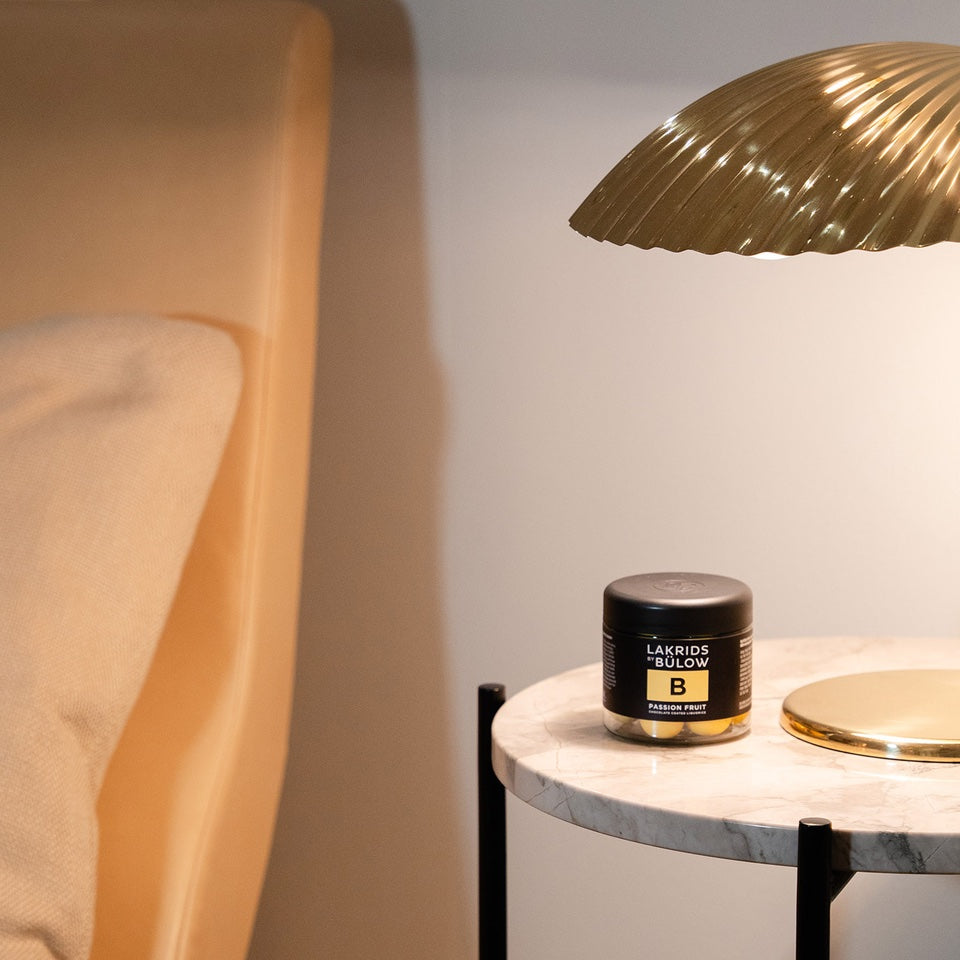 Süßer Lakritz mit erlesener weißer Schokolade und verführender Passionsfrucht. Die Säure der Passionsfrucht, die Süße der Schokolade und die Fähigkeit des Lakritzes, diese Aromen zu vereinen, gibt einen perfekten Biss. Süß, sauer und souverän - umgeben von einer zarten, knusprigen Zuckerschicht.