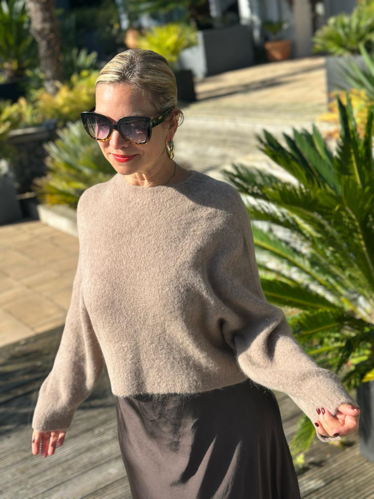 Cropped geschnittener Kuschelpullover "ELLA" in Camel