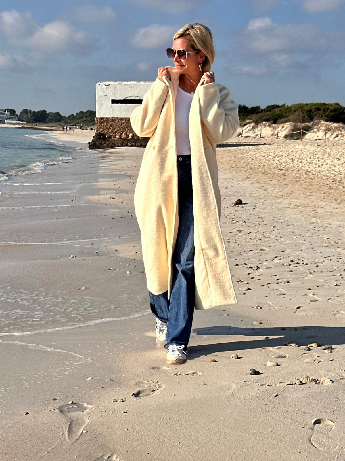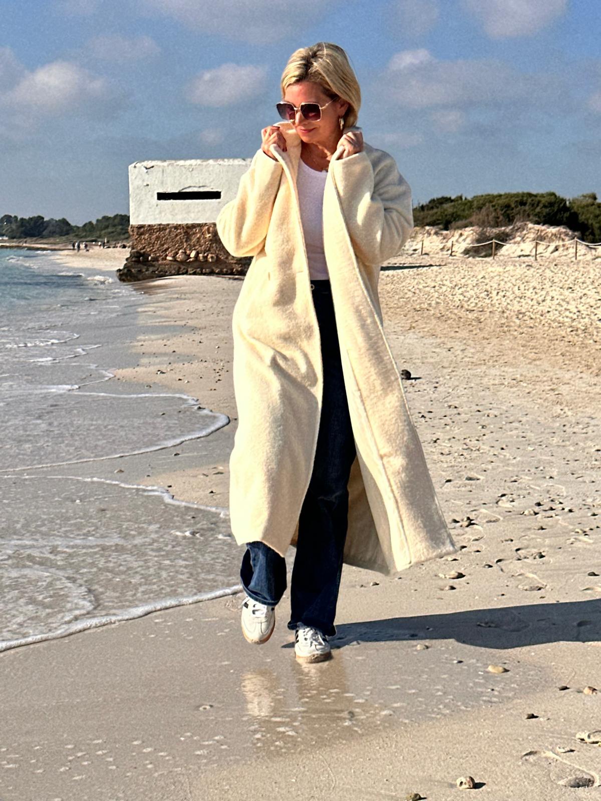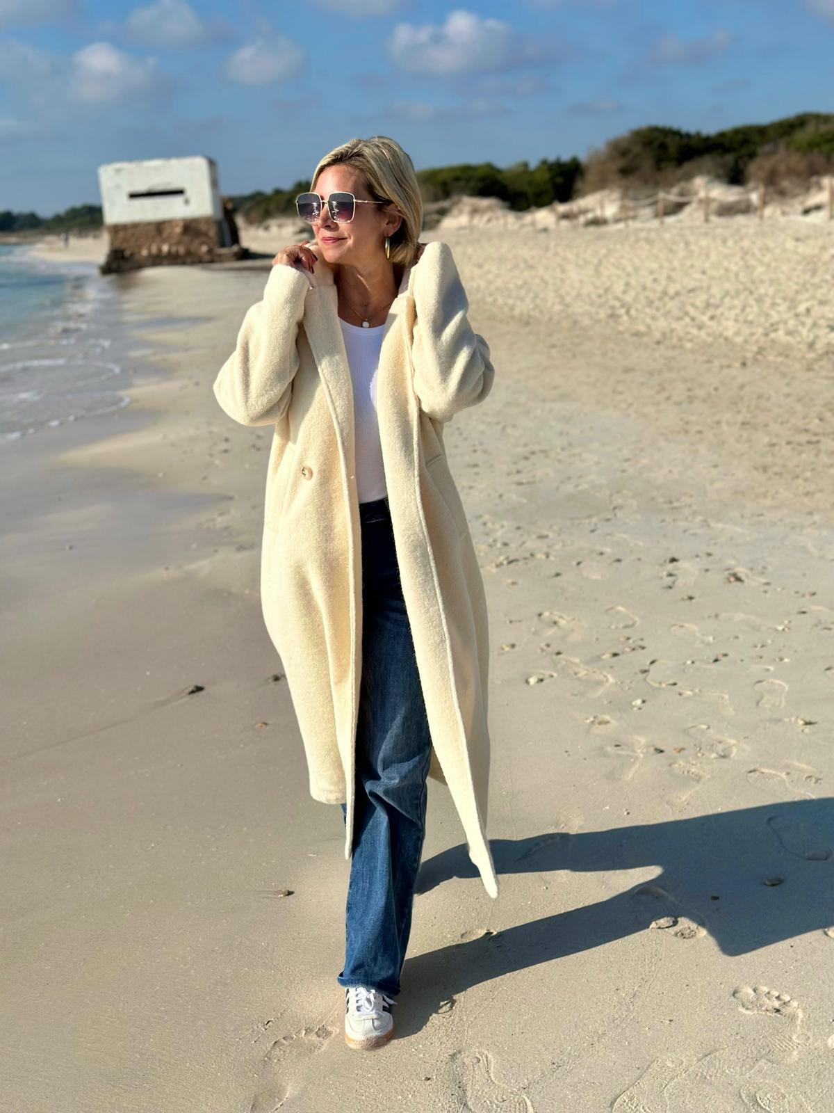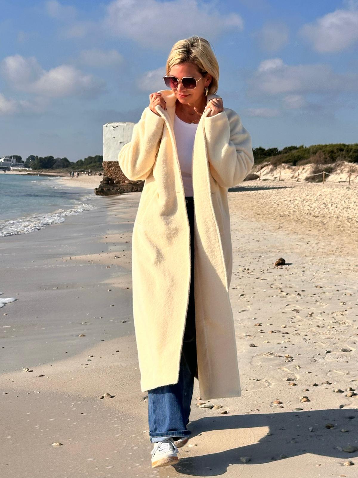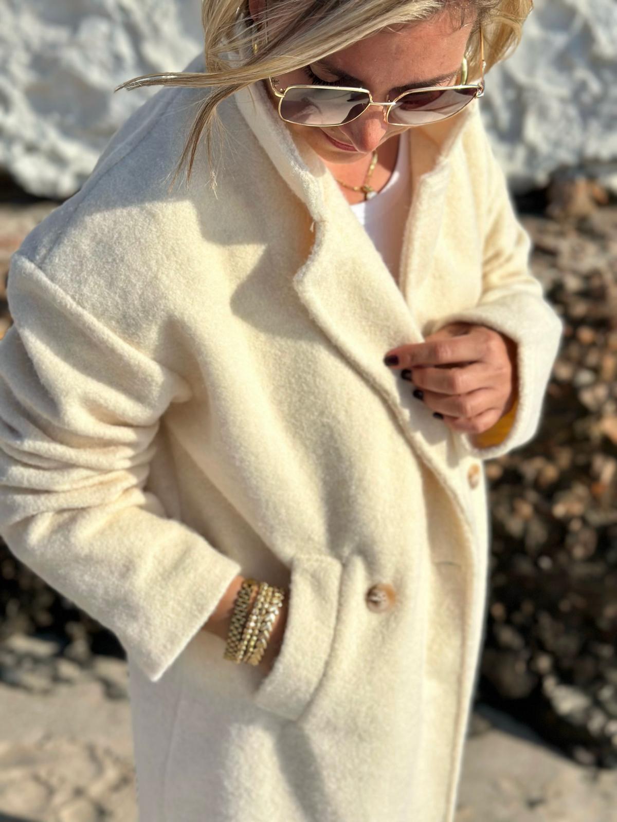 Eleganter Wollmantel in Creme
