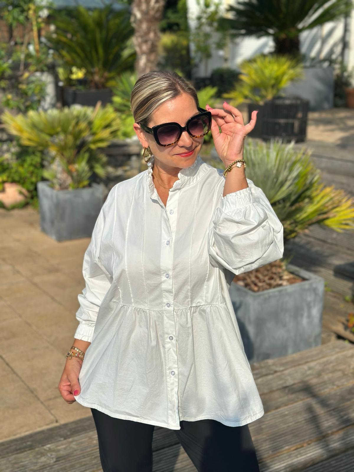 Ähnlich wie unsere anderen gerafften Bluse ist auch diese süße Bluse ein wunderschönes Onesize Teilchen für Deinen Kleiderschrank!